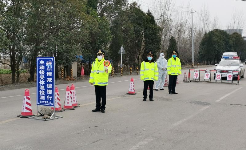 因疫情防控需要及恶劣天气影响,年初四中午淮北南高速出入口封闭。交通执法第三、第五大队执法人员在圆满完成淮北南高速卡口防疫检查任务后,根据支队部署,进而转战了新的战场——宋疃卡点,投入到新的疫情防控阻击战中。