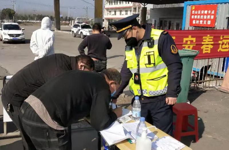 宋疃卡点离G3京台高速淮北出入口较近,是烈山区重要的交通集散通道。随着返工、返程潮的到来,卡点车流量持续加大,导致疫情防控检测区域交通压力剧增。在值守中,三大队副大队长、党员袁骁发现很多外省需要劝返的车辆要求上高速返回当地,但是上高速还要通过卡点向市区方向行驶三四公里左右,按要求车辆是不能通过卡点的,这样就给劝返工作造成了极大的不便。