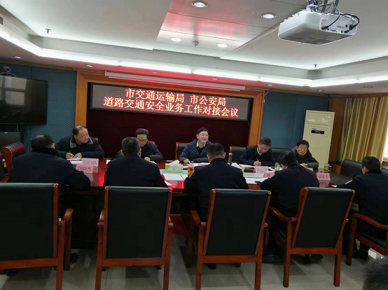 2月9日上午,市公安局党委委员、交警支队队长王渊一行来市交通运输局对接道路交通安全业务工作。市交通运输局党组书记、局长王庆江,局党组成员、副局长朱东升参加会谈。