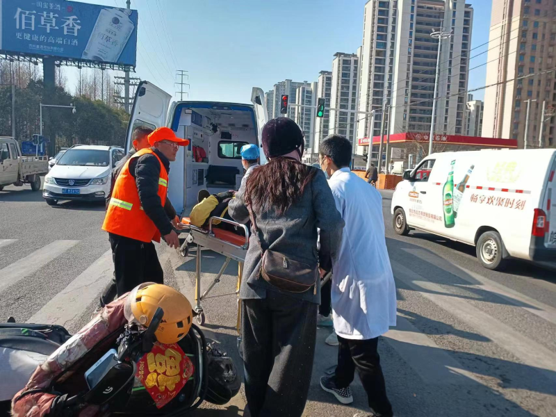 当天上午9时许,“中国好人”濉溪分中心养护工人吕本恒和同事在G237路段进行路面养护保洁作业时,突然听到一声刺耳的刹车声,只见一名外卖小哥与私家车发生碰撞,连人带车摔倒在马路中央,表情痛苦不堪。吕本恒师傅反应迅速,第一时间拨打了120急救电话及报警电话。为避免二次伤害,他和同事迅速在事故现场周围设置了安全警示标志;同时,耐心安抚外卖小哥情绪。