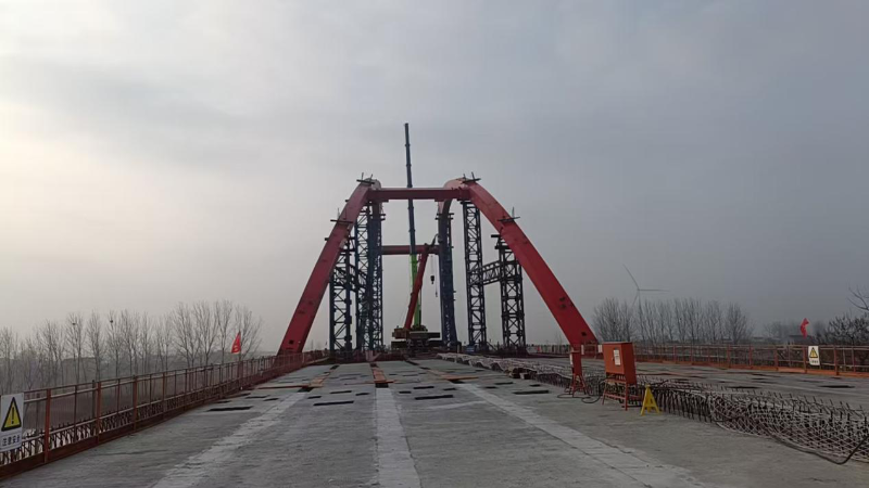 S235淮北段一级公路(S235濉唐路三期工程)浍河大桥钢箱系杆拱高质量合龙