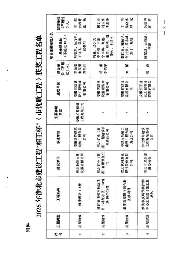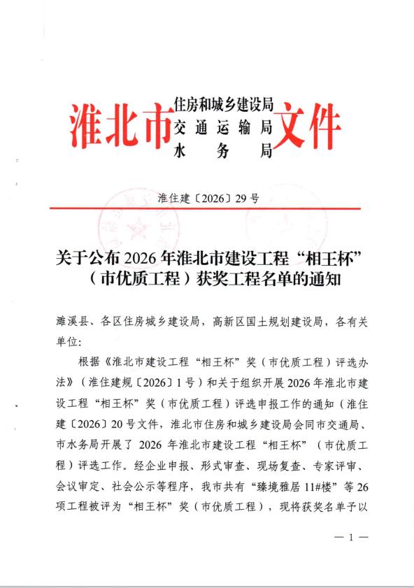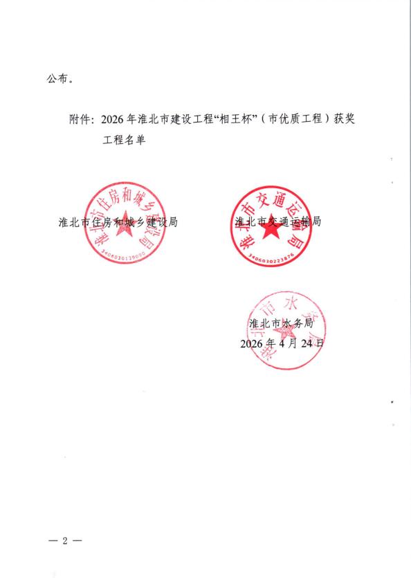关于公布2026年淮北市建设工程“相王杯”(市优质工程)获奖工程名单的通知