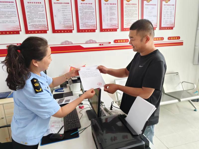 为提升交通运输综合执法质效,推深做实交通执法123新模式,持续优化法治化营商环境,服务保障交通运输高质量发展,淮北市交通运输综合行政执法支队从2024年7月起在原行政处罚信息“双书同达”基础上全面推行“三书同达”制度。近日,砀山县金辉物流有限公司的工作人员来到淮北市交通运输综合行政执法支队第九执法大队处理违法案件,在收到《行政处罚决定书》同时,收到了一份《信用修复告知书》和一份《行政合规建议书》,并在大队执法人员的耐心讲解下,进一步加深了对交通运输企业守法经营及信用修复等事项的认知,企业满意度得到进一步提升。