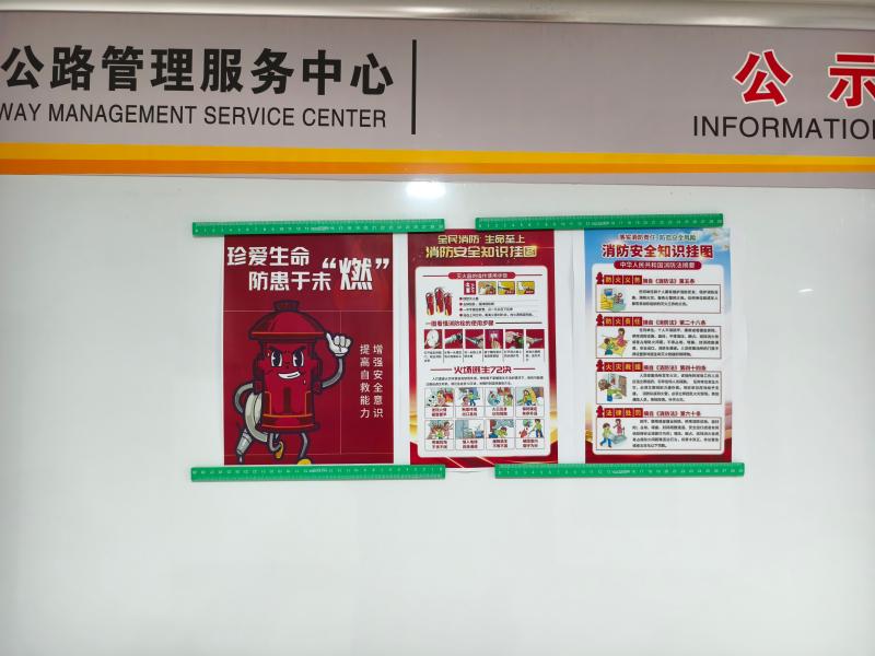 此次宣传活动充分发挥机关LED屏“点多面广”优势,在公路中心机关、濉溪分中心、直属分中心及下辖11个道班LED屏同步启动宣传,形成“主阵地+分阵地”联动格局。在机关宣传栏张贴宣传海报和消防安全知识挂图,重点宣传《中华人民共和国消防法》中防火义务与责任、火灾救援、法律处罚等相关内容,通过“一张图看懂机关消防设施怎么用”的方式重点讲解灭火器、消防栓的使用步骤,并通过漫画配口诀的方式增强记忆点,普及火场逃生知识。
