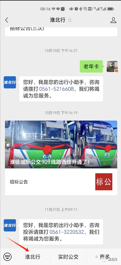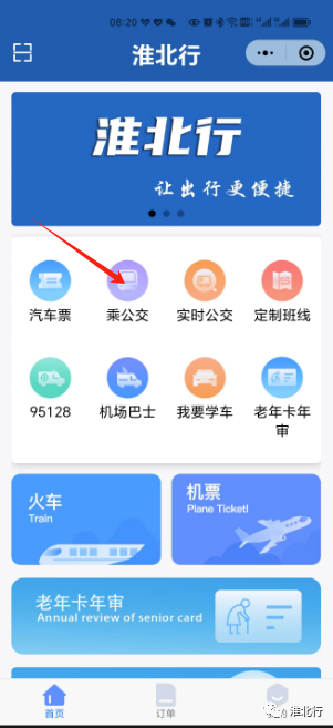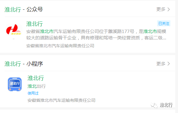 打开微信,搜索“淮北行”公众号,关注后点击淮北行小程序,