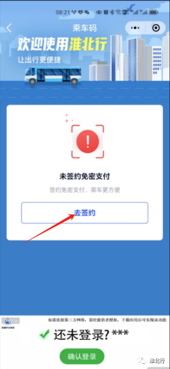 点击“乘公交”签约并开通微信免密支付功能,即可微信扫码乘公交啦。