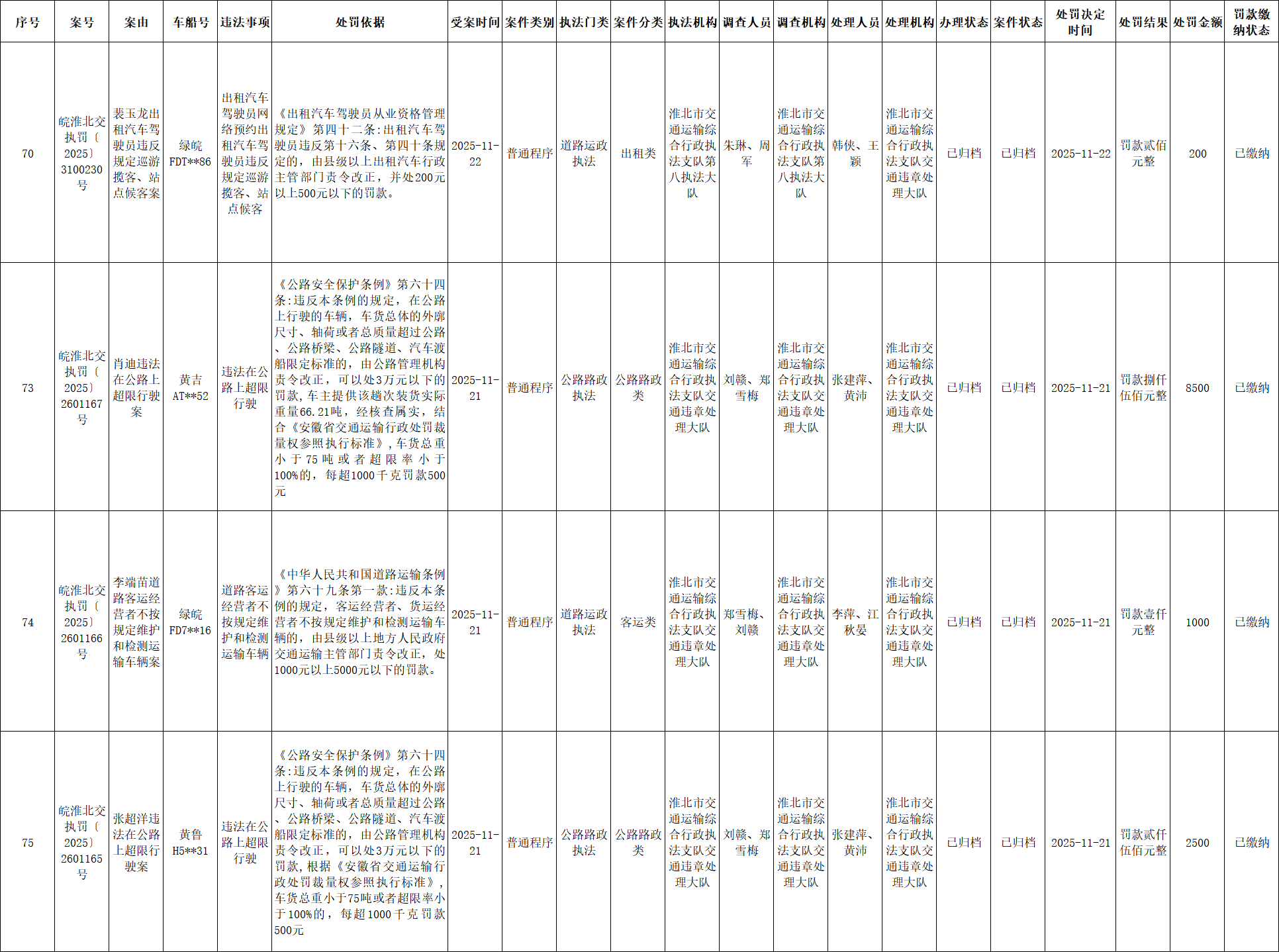 淮北市交通运输局行政处罚公示(2025.11.17-2025.11.23)