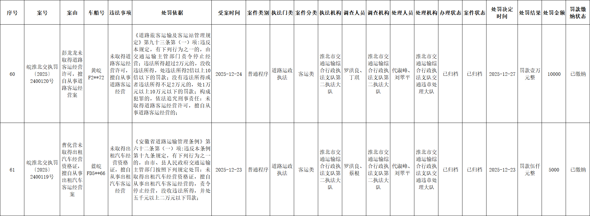 淮北市交通运输局行政处罚公示(2025.12.22-2025.12.28)