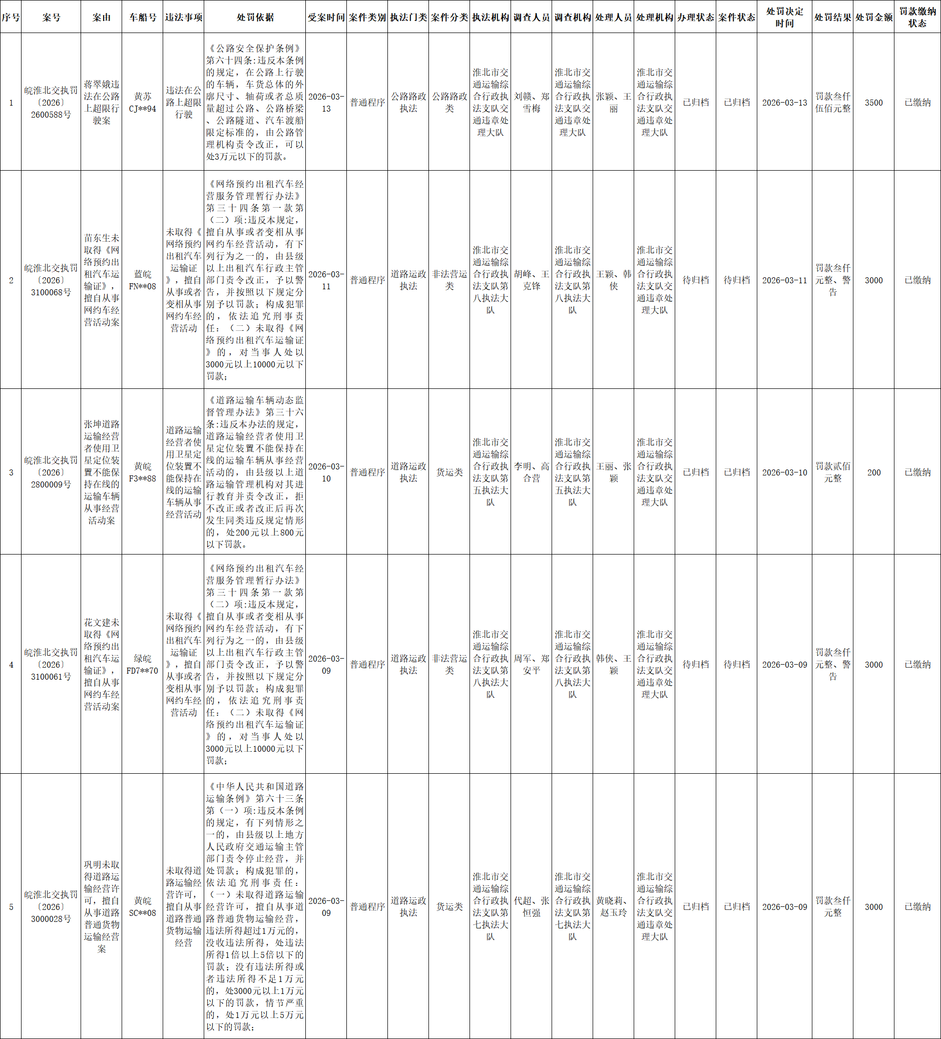 淮北市交通运输局行政处罚公示(2026.3.9-2026.3.15)